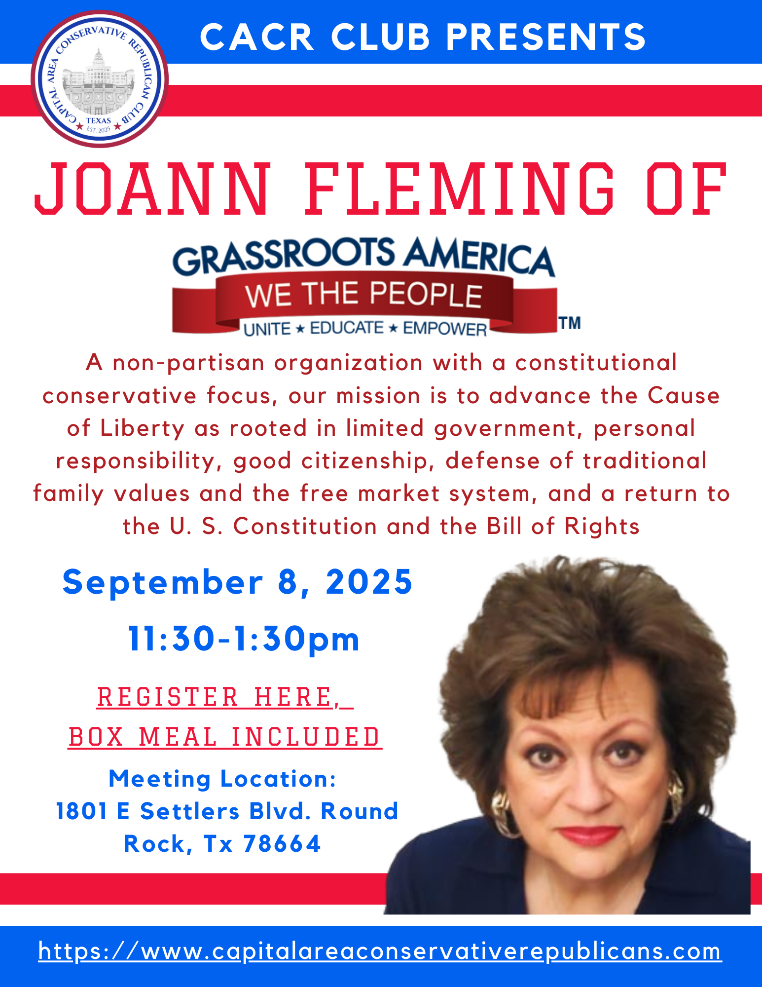 September 8th: 11:30am - 1:30pm, JoAnn Fleming, GAWTP