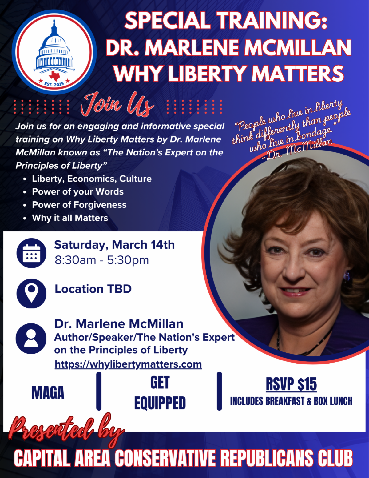 Once citizens learn what the problems are, then we work to encourage and teach them how to stand up, show up, and speak up for our freedom and liberties.