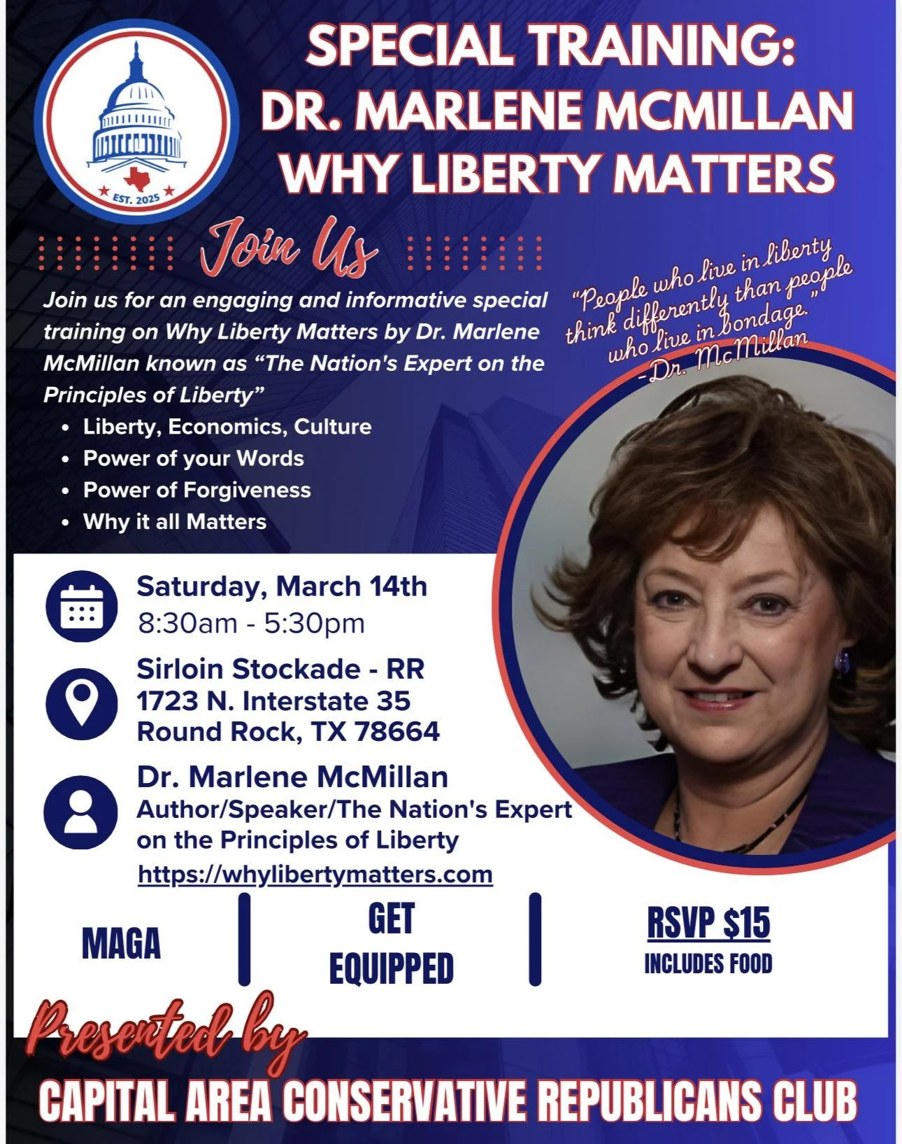March 14th: 8:30am - 5:30pm Special Training with Dr. Marlene McMillan